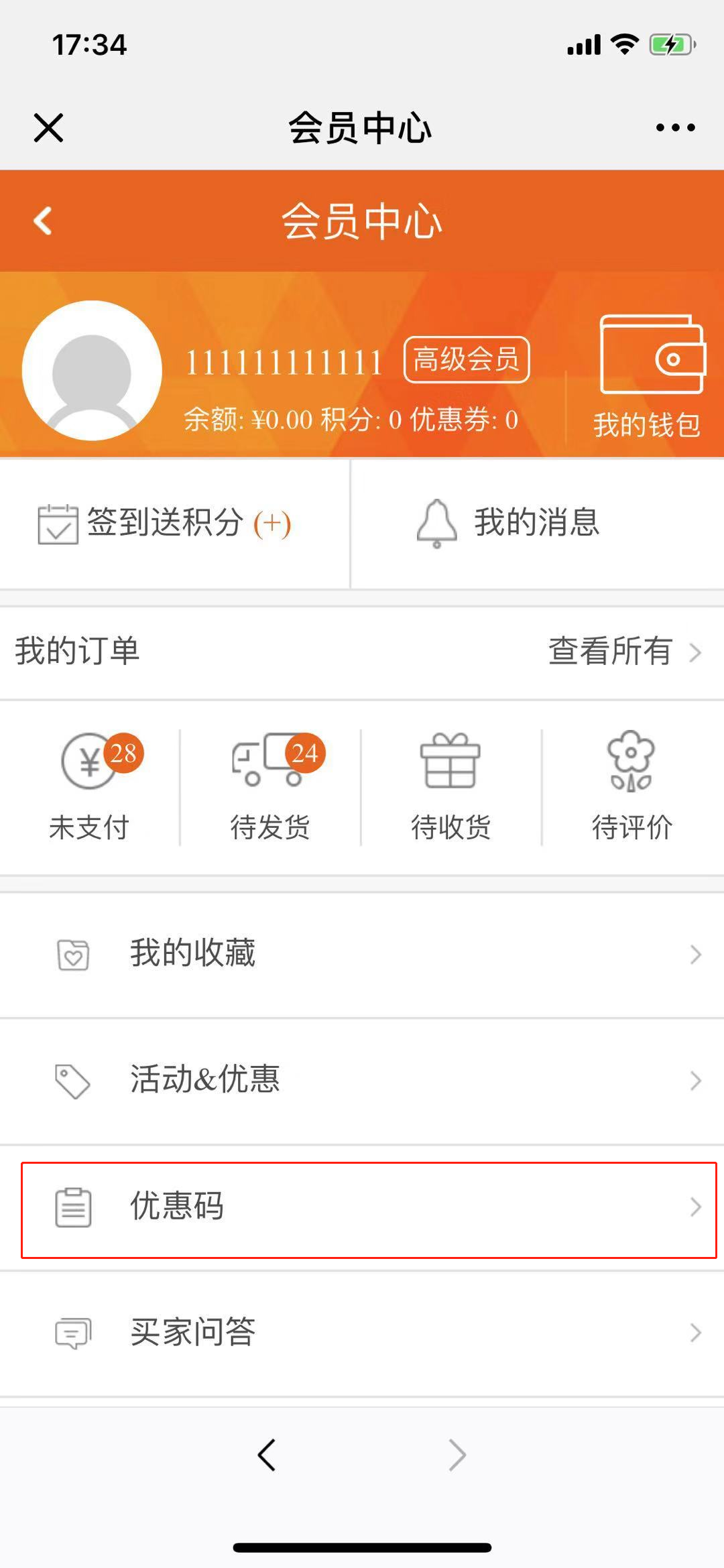 3.Pc端可在个人中心查看优惠码,如图所示:
